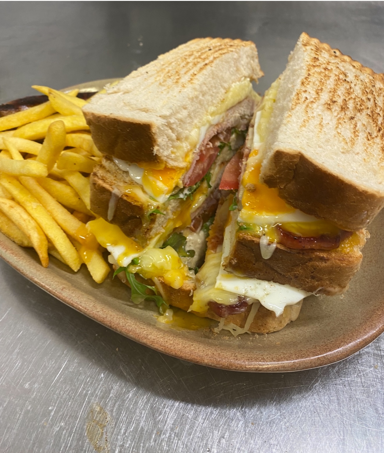 Chicken Cub Sandwich with fries